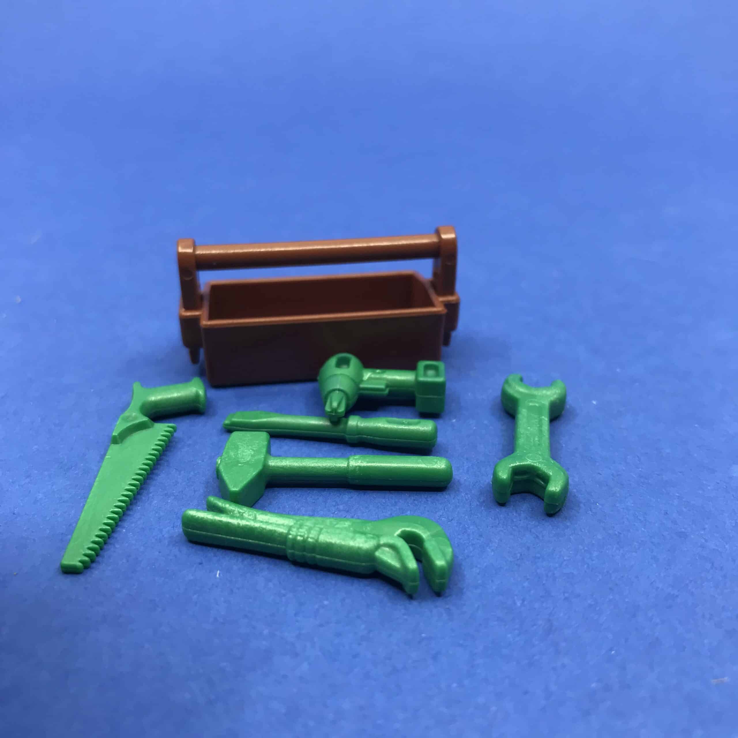 Playmobil gereedschapskistje met inhoud.