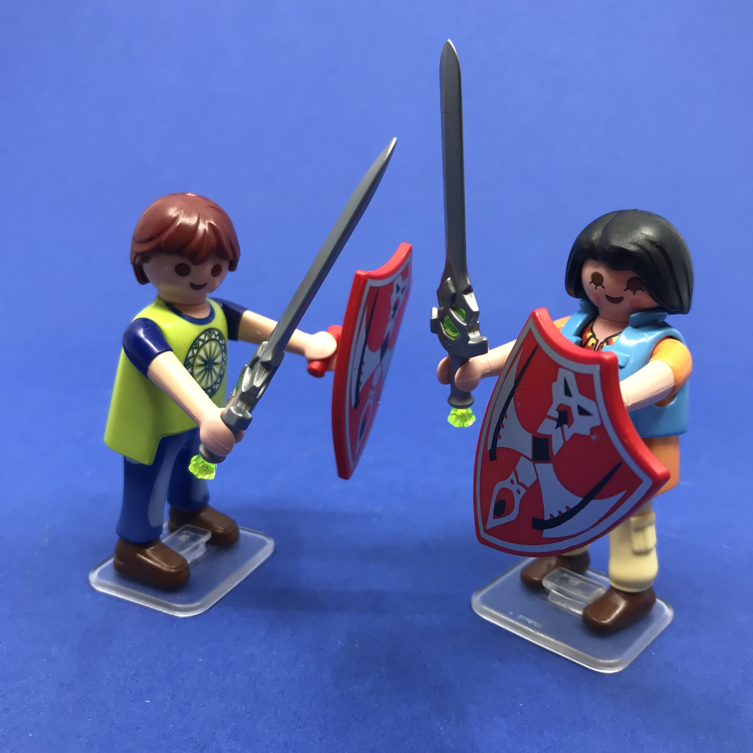 Playmobil vechtscheiding, ruzie. Beiden hebben een zwaard en schild. Maken overal ruzie over. De set is nieuw.